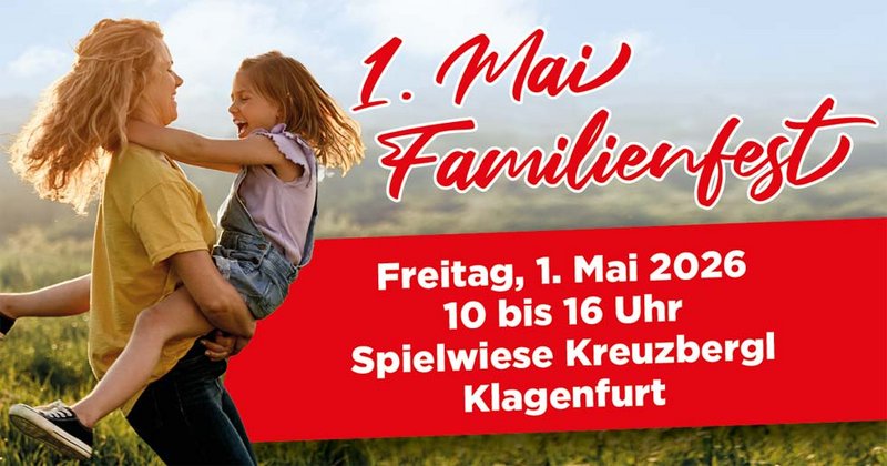 Am Freitag, 1. Mai 2026, lädt die SPÖ Klagenfurt wieder zum traditionellen Familienfest auf die Spielwiese am Kreuzbergl ein. Von 10:00 bis 16:00 Uhr erwartet Familien ein abwechslungsreiches Programm mitten im Grünen, hoch über den Dächern von Klagenfurt.