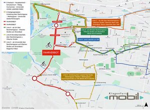 Während der Sperre wird der Lakeside Park nicht bedient. Änderungen gibt es bei mehreren Linien der Klagenfurt Mobil GmbH (KMG).