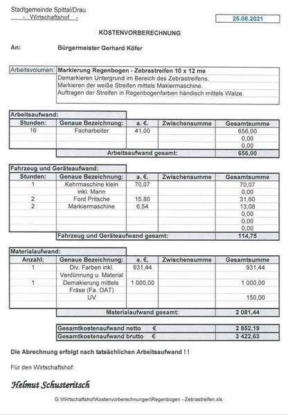Die öffentliche Diskussion habe aber auch einen Vergleich der Kosten mit anderen Städten hervorgerufen. „Wir mir heute Bürgermeister Gerhard Köfer bestätigt hat, hätte der Zebrastreifen in selbiger Größe und mit den gleichen Voraussetzungen von der Stadt Spittal um weniger als ein Drittel der Kosten renoviert und gefärbt werden können.“ Die Stadt Klagenfurt verfügt über eine kleinere Fräse mit der die Durchführung mit mehr Aufwand aber dennoch auch selbst möglich gewesen wäre. „Es ist aber Aufgabe der zuständigen Referentin sich hier genau in Kenntnis zu setzen, der Abteilung kann man nichts vorwerfen, die Mitarbeiter haben ausgezeichnete Arbeit geleistet“, so der Klubobmann des Team Kärnten.