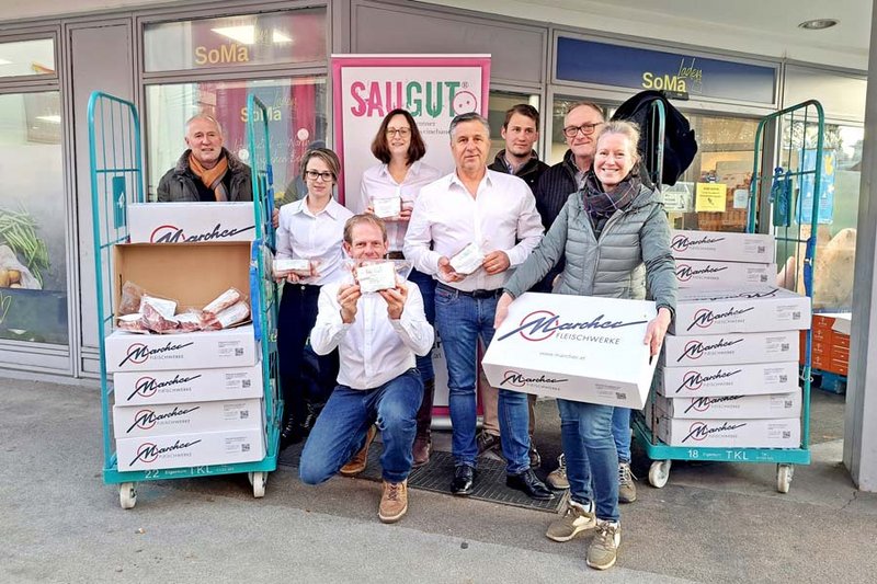 Die Initiative SAUGUT des Verbandes der Kärntner Schweinebauern unterstützt gemeinsam mit den Marcher Fleischwerken auch heuer wieder die Kärntner Sozialmärkte.