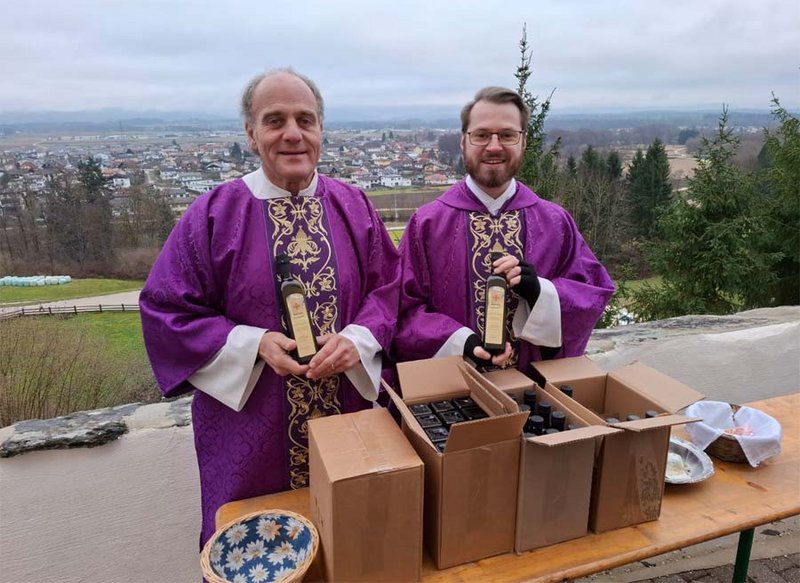 Auch heuer konnten die Gläubigen nach der Messe wieder das hochwertige Öl erwerben und damit die Christen im Heiligen Land direkt unterstützen. Der Direktimport erfolgt durch die „Ritter vom Heiligen Grab zu Jerusalem“, die den Kontakt zu den Produzenten vor Ort aufrechterhalten.