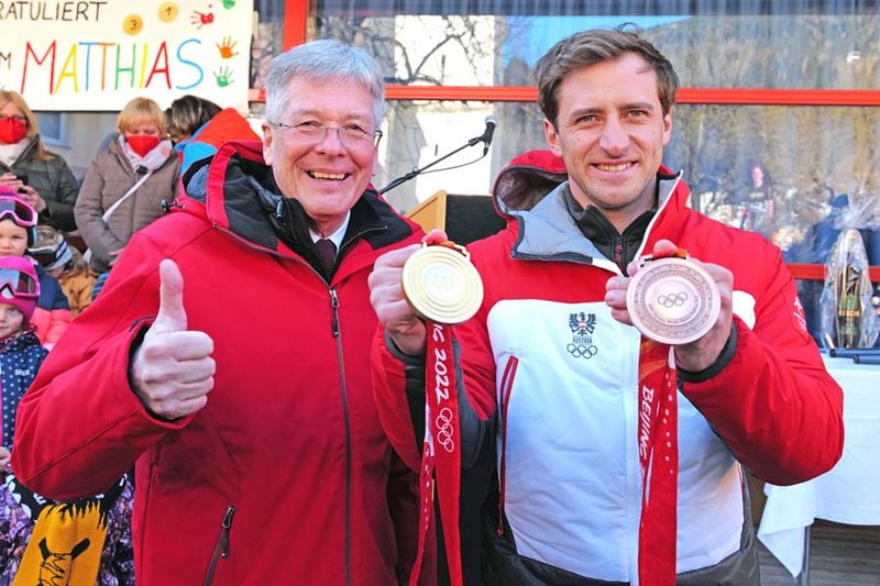 LR Martin Gruber bezeichnete den Empfang als „Spitzentreffen des Sports“, da auch die beiden Olympiasieger Franz Klammer und Fritz Strobl dem frischgebackenen Peking-Sieger und dreifachen Olympiasieger Mayer heute die Ehre erwiesen. „Afritz ist heute der sportliche Mittelpunkt Kärntens. Außergewöhnlichen Leistungen und Erfolge wie von Matthias Mayer sind es, die gerade in diesen Zeiten Halt geben. Matthias, du bist als der beste Schisportler Österreichs unter Olympischen Ringen ein Fels in der Brandung für uns alle“, so Gruber.