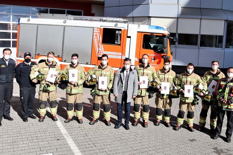 Im Herbst haben die Probe-Feuerwehrmänner bei der Berufsfeuerwehr ihre Grundausbildung gestartet. Sechs Monate lang wurden sie umfassend auf den Einsatzdienst vorbereitet und trainiert. „Wir sind sehr froh, dass wir junge, neue Kräfte in das Team aufnehmen können. Aufgrund von Pensionierungen und der Pandemie war es unser oberstes Ziel, dass die Ausbildung rasch abgeschlossen werden kann - damit wir die Jungfeuerwehrmänner schnellstmöglich in den 24-stündigen Einsatzdienst integrieren können“, so Dipl.-Ing. Herbert Schifferl, Leiter der Berufsfeuerwehr in Klagenfurt. Am Dienstag gab es die technische Abschlussprüfung am Gelände der Berufsfeuerwehr. Dabei mussten zwei Einsatzaufgaben bewältigt werden: Die sieben Probe-Feuerwehrmänner mussten mittels Trage und Drehleiter eine Personenbergung aus dem vierten Stockwerk absolvieren. Ebenso wurde ein nachgestellter Verkehrsunfall mit einer eingeklemmten Person gemeistert. „Unsere Bevölkerung kann sich auf einen sehr hohen Standard bei der Berufsfeuerwehr und den freiwilligen Feuerwehren verlassen. Mit der Ausbildung der Probefeuerwehrmänner konnten wir trotz Pandemie einen nächsten, wichtigen Schritt setzen. Es ist schon sehr beachtlich, dass es bei unseren Feuerwehren nie Nachwuchsprobleme gegeben hat. Dazu kann man sich nur bei allen bedanken, die täglich ihren Beitrag für die Bevölkerung leisten“, betont Feuerwehrreferent Bürgermeister Christian Scheider anlässlich der Übergabe der Prüfungszeugnisse am Dienstag.