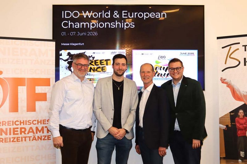 Erfreut beginnt Stadtrat Julian Geier die heutige Pressekonferenz zur IDO World and European Championships in Klagenfurt: „Es erfüllt mich mit Stolz, dass unsere Landeshauptstadt der Austragungsort für diese Tanzmeisterschaften sein wird. Diese Veranstaltung ist eine immense Wertschöpfung für die gesamte Region. Ich freue mich darauf, unsere Gäste willkommen zu heißen und dass die Innenstadt dadurch zusätzlich belebt wird.“