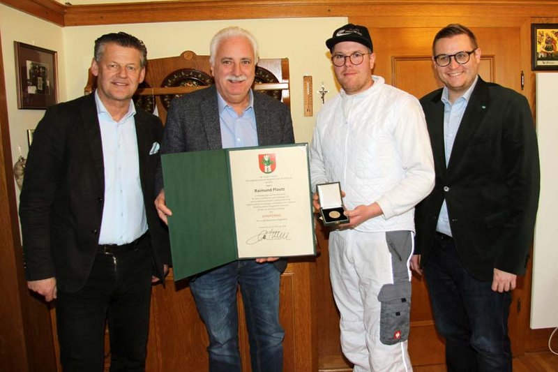 In Würdigung seiner Verdienste und Leistungen im wirtschaftlichen Bereich, insbesondere als Lebensmittelnahversorger und Inhaber der ältesten Fleischhauerei in Klagenfurt sowie aus Anlass seiner Pensionierung, wurde Raimund Plautz am Mittwoch vom Bürgermeister der Ehrpfennig der Landeshauptstadt verliehen.