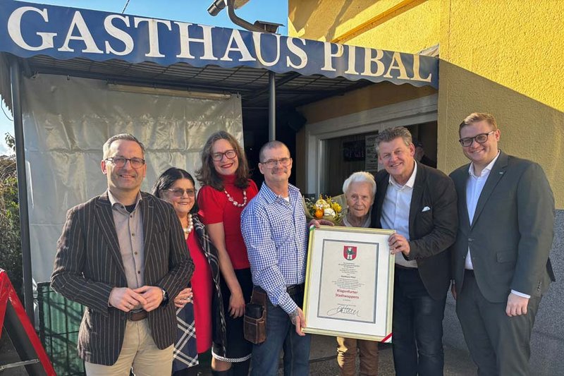 „Das Gasthaus Pibal ist geprägt von der Persönlichkeit der Wirtefamilie. Ein Traditionsbetrieb, der für Qualität und Geselligkeit steht und das seit fünf Jahrzehnten – da kann man nur gratulieren“, sagt Bürgermeister Christian Scheider, der der Wirtefamilie in Anerkennung und Würdigung ihrer Leistung die Urkunde mit dem Recht zur Führung des Klagenfurter Stadtwappens verliehen hat.