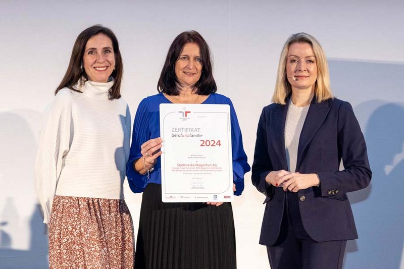 Die Stadtwerke Klagenfurt AG zeichnet sich durch eine Vielzahl von familienfreundlichen Maßnahmen aus. Dazu gehören flexible Arbeitszeitmodelle, wie die Einführung der „kurzen/langen Woche“, Homeoffice sowie zahlreiche Karenz- und Teilzeitmöglichkeiten. Besonders hervorzuheben sind auch die verschiedenen Ferienbetreuungsangebote sowie das Projekt Wertekompass, das zu einer engeren Vernetzung der MitarbeiterInnen im Konzern und einem deutlich spürbaren „Wir-Gefühl“ geführt hat. In der Zukunft wird die Pflege von Angehörigen als weiteres wichtiges Thema in den Fokus gerückt, wobei auch der kontinuierliche Werteprozess im Unternehmen von großer Bedeutung bleibt. Zudem sollen die enge Vernetzung mit Kärntner Unternehmen weiter ausgebaut und regionale Synergien besser genutzt werden.