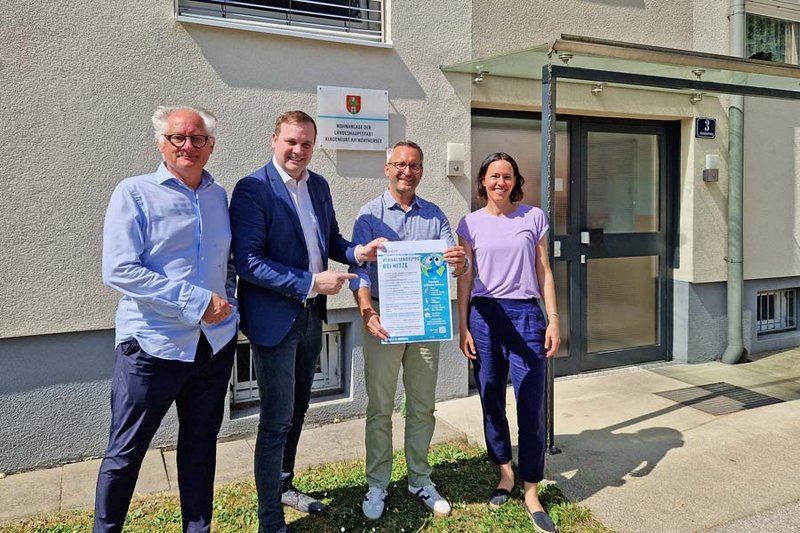 „Klagenfurt Wohnen“ unterstützt diese Hitzeschutzmaßnahmen: Es wurden dementsprechend Plakate mit den wichtigsten Informationen in den Stiegenhäusern der städtischen Wohnanlagen aufgehängt. „Wir möchten damit vor allem die ältere Generation sensibilisieren und haben daher die Initiative gestartet. Mit den Plakaten in den Stiegenhäusern hat jeder Bewohner einfachen Zugang zu den wichtigen Tipps während der heißen Tage“, erklärt Wohnungsreferent Vizebürgermeister Patrick Jonke.