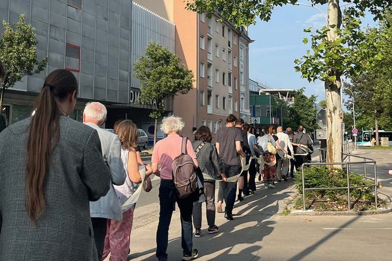 Ein künstlerisches Zeichen setzte das Duo zweintopf mit einer Intervention des Autors Jani Oswald, performt von Lara Vouk und begleitet vom Michael Erian Ensemble. Vom Domplatz aus führte der gemeinsame Weg zum kärnten.museum, wo zentrale Beiträge zur aktuellen Ausstellung vertieft wurden. Dort präsentierten Catrin Bolt, Friedemann Derschmidt und Alaa Alkurdi Werke, die das Spannungsfeld von Raum, Erinnerung und Verantwortung thematisieren.