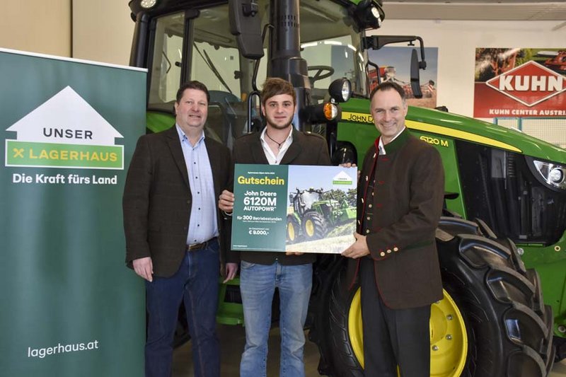 „Unser Lagerhaus“ WHG verloste anlässlich der Agrarmesse Alpen-Adria 2023 in Klagenfurt den „Traktor of the Year 2022 – Best Utility“, einen John Deere 6120M AutoPowrTM für insgesamt 300 Betriebsstunden.