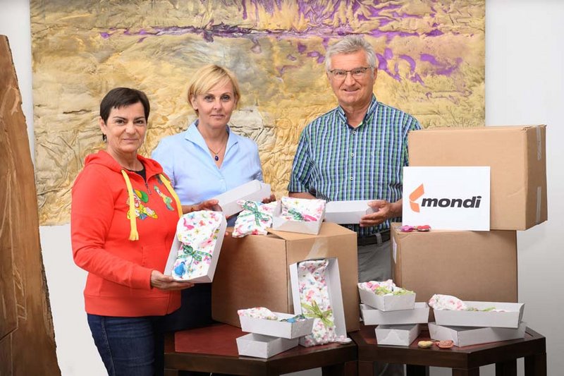 Das diese herzerwärmende Aktion überhaupt möglich wurde, ist Manuela Loupal und Bernhard Wallner zu verdanken. Nach Vorsprache bei DI Gottfried Joham (GF MONDI Frantschach) und DI Florian Döbl (Managing Director MONDI Grünburg) war für die Frantschacher Firma MONDI selbstverständlich, die Aktion zu unterstützen und so wurden 11.000 Stück kleine und mittlere „Bettchen“ für die 5 Geburtenstationen produziert, die an die Plattform „Verwaiste Eltern“ gespendet wurden.