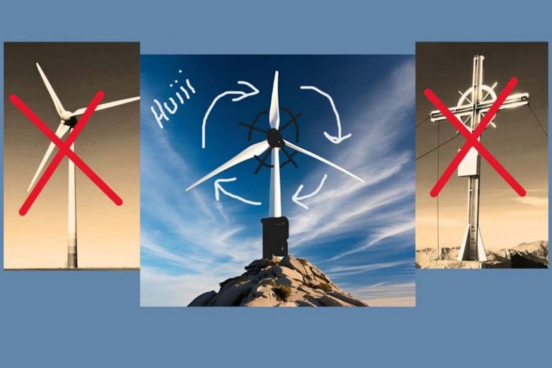 Das GipfelkreuzWindrad vereint symbolisch zwei Kräfte: den Glauben und die nachhaltige Energiegewinnung. Die Idee dahinter ist provokant und poetisch zugleich, ein Projekt, das fest im Glauben verankert ist und dennoch den heimatlichen Energiebedarf erneuern soll.
