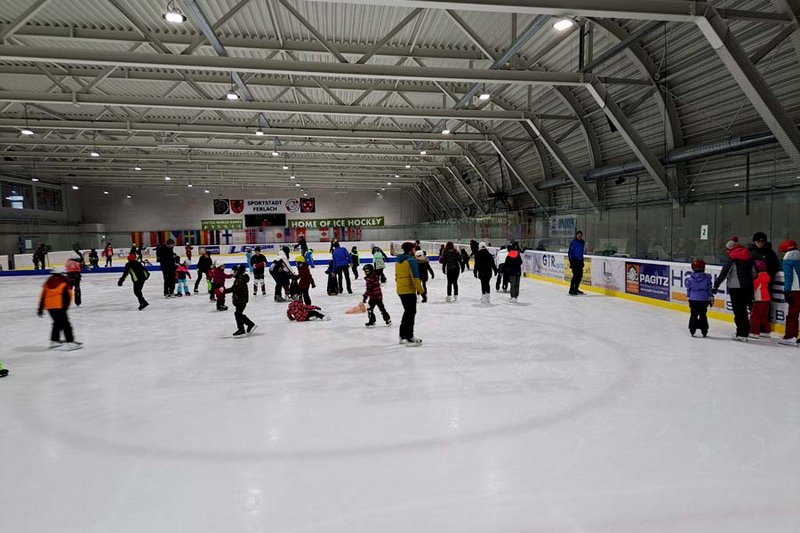 Jeden Samstag in der Zeit von November 2023 bis Mitte März 2024 sowie in den Weihnachts- und Semesterferien wird zum kostenlosen Eislaufen in die Eishalle Ferlach geladen.