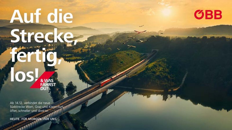 Die ÖBB starten rund um die neue Südstrecke eine große Werbekampagne. Anlass ist die Eröffnung der Koralmbahn, die als Jahrhundertprojekt gilt und Österreich verkehrstechnisch stark verändert.
