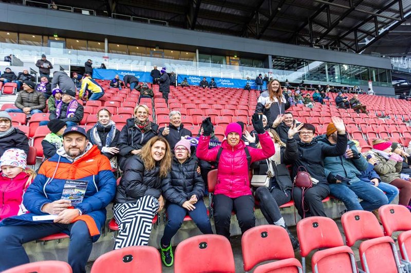 Eine besondere Aktion der Austria Klagenfurt sorgte gestern für strahlende Kinderaugen und großen gemeinschaftlichen Spirit: Die Schülerinnen und Schüler der Sonderschule Waidmannsdorf waren gemeinsam mit Eltern, Pädagoginnen und Pädagogen zum Heimspiel gegen Amstetten (0:2) eingeladen, und Kärntens Sportreferent, Landeshauptmann Peter Kaiser feuerte gemeinsam mit den Schülerinnen und Schülern die Violetten lautstark an.