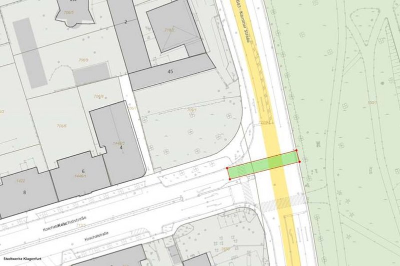 Hier befinden wir uns derzeit im vierten und letzten Bauabschnitt. Um diesen abschließen zu können, braucht es Grabungen am Villacher Ring im Bereich der Kreuzung mit der Koschatstraße.