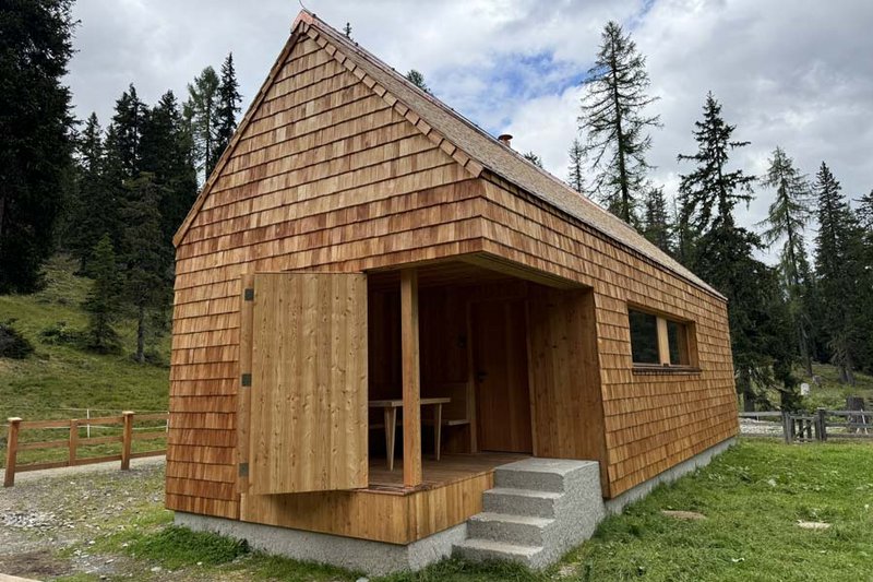 In einer kleinen Zeremonie besichtigten die Architekten, die ausführenden Gewerke und Vertreter des ÖAV Klagenfurt am 23. September 2024 die frisch umgebauten und sanierten Hütten.