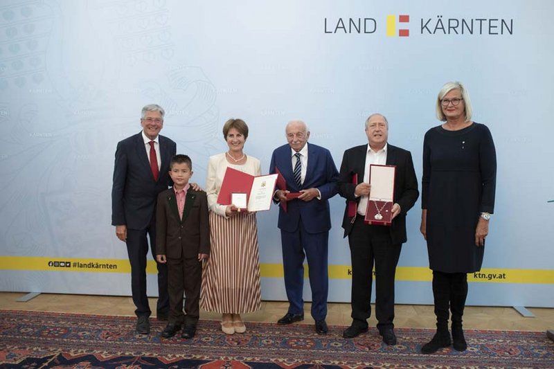 Klagenfurt (LPD). Ehrenzeichen wurden gestern, Montag, im Spiegelsaal der Landesregierung an verdiente Kärntnerinnen und Kärntner verliehen. LH Peter Kaiser zeichnete in Anwesenheit von LHStv.in Beate Prettner, LHStv.in Gaby Schaunig und LR Martin Gruber den ehemaligen Politiker und Landesrat Rolf Holub, Kleine Zeitung-Chefredakteurin i.R. Antonia Gössinger, die ehemalige Bundesministerin und österreichische Diplomatin Ursula Plassnik sowie den pensionierte Feldkirchner Mediziner Hermann Berger aus.