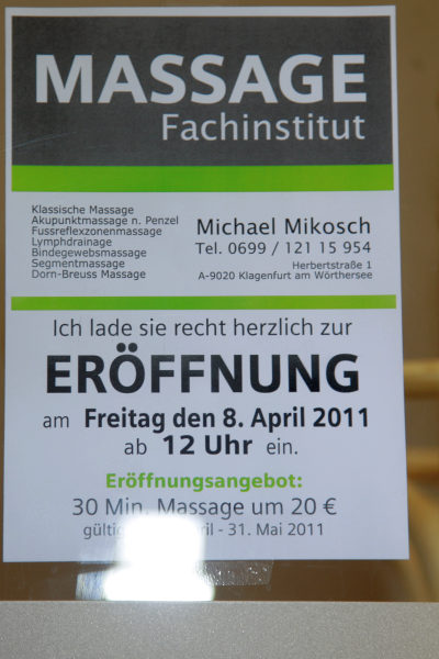 Michael Mikosch eröffnete in der Klagenfurter Herbertstraße 1 sein neues Massagefachinstitut.