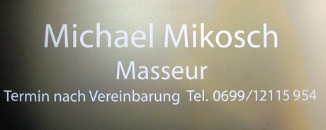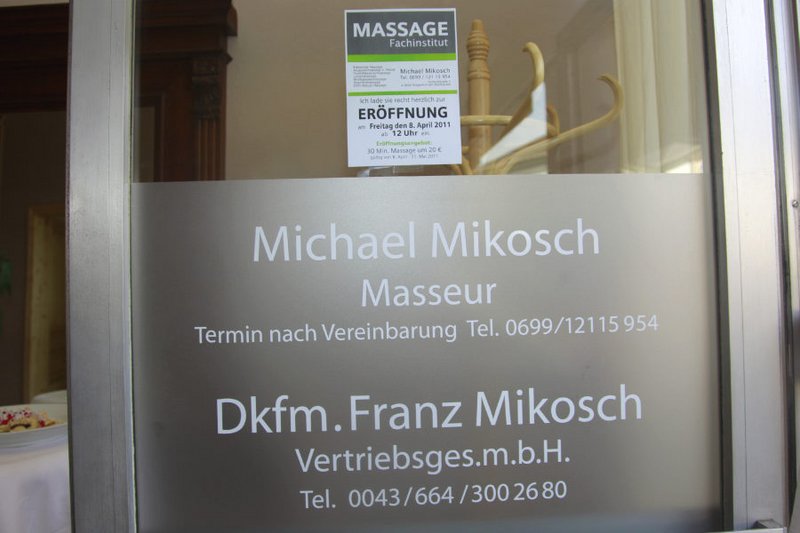 Michael Mikosch bietet in seinem Massagefachinstitut neben der klassischen Massage auch die Akupunktmassage nach Penzel, Fussreflexzonenmassage, Lymphdrainage, Bindegewebsmassage, Segmentmassage sowie die Dorn-Breuss Massage.