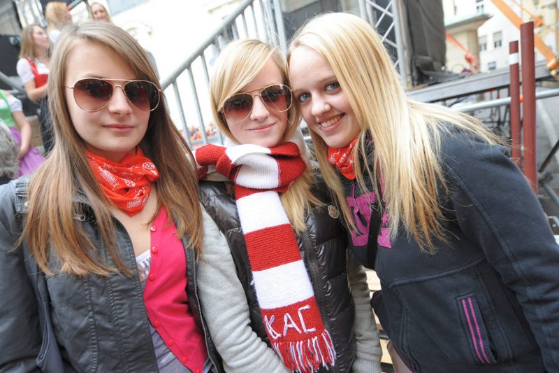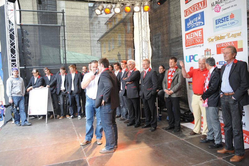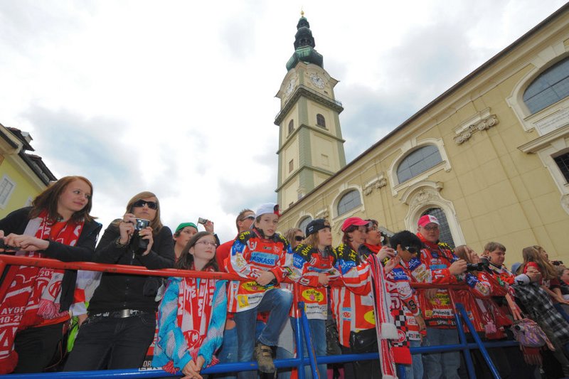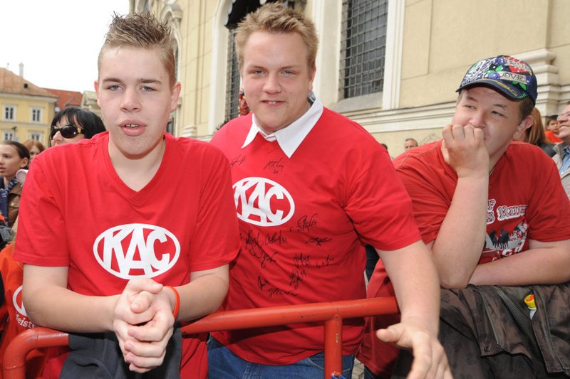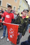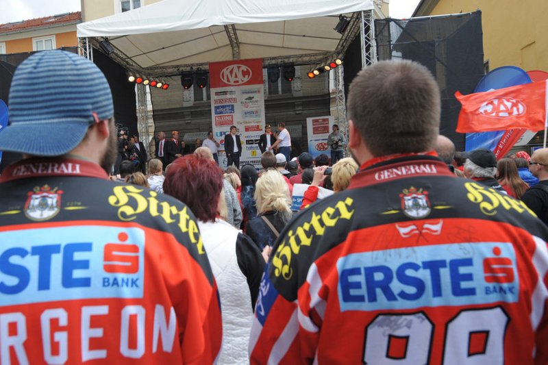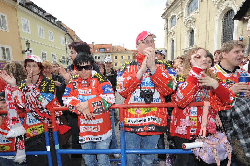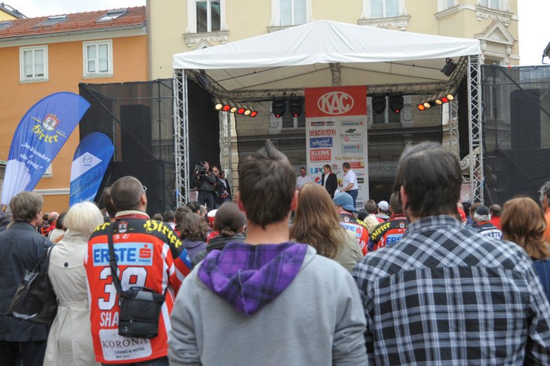 Am Pfarrplatz wurde dann ausgiebig mit tausenden KAC-Fans gefeiert.