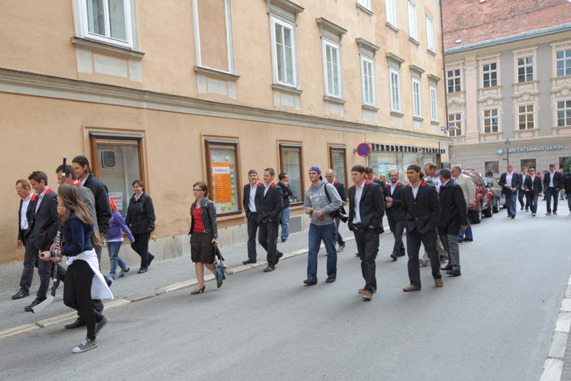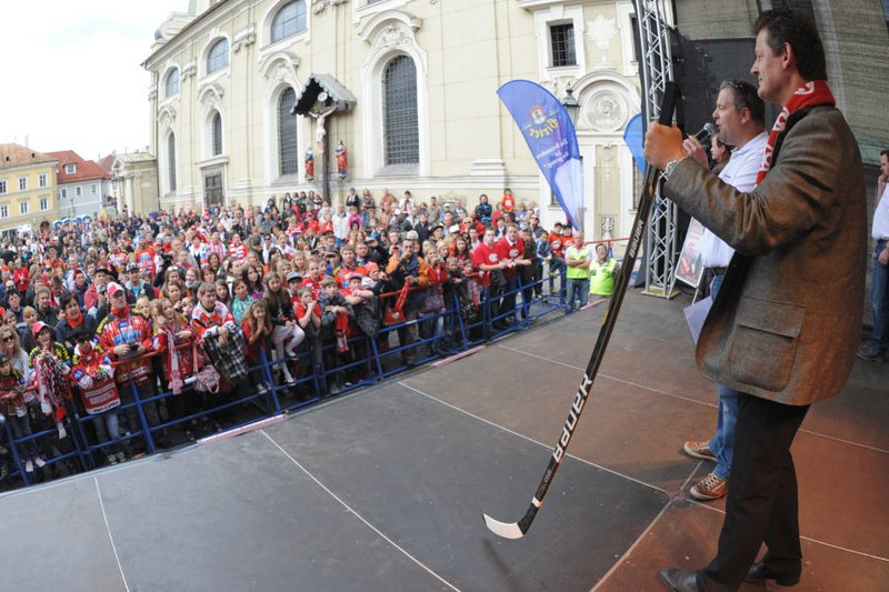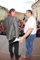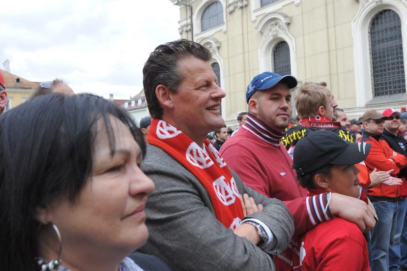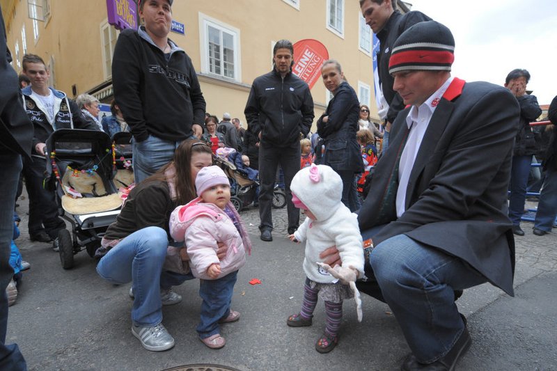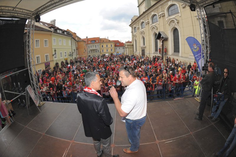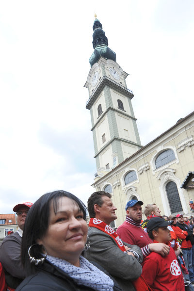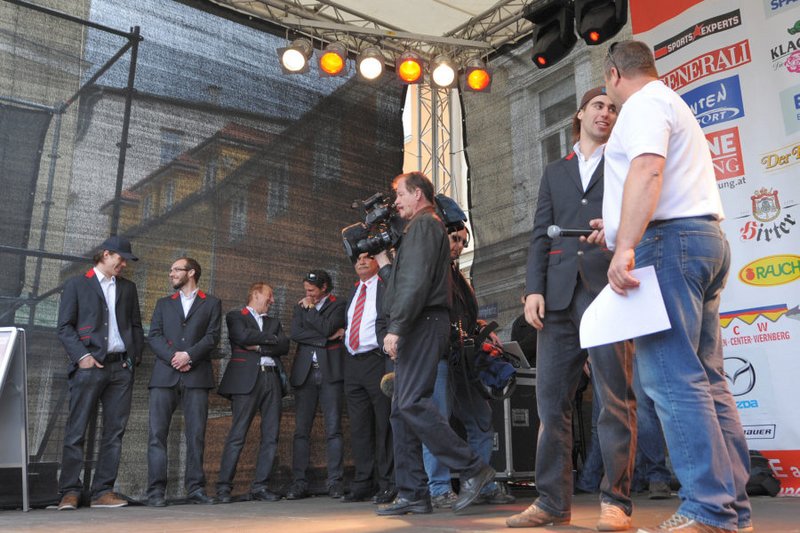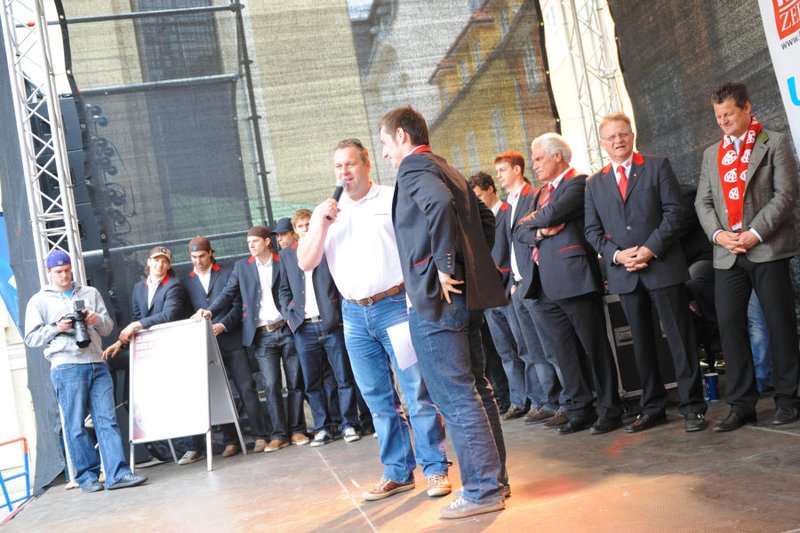 Am Pfarrplatz wurde dann ausgiebig mit tausenden KAC-Fans gefeiert.