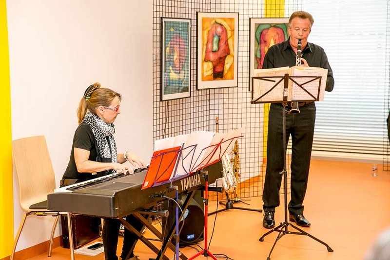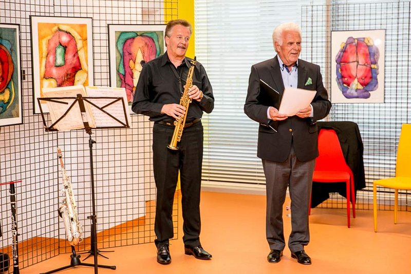 Neben den Werken des junggebliebenen Künstlers gab es auch musikalische Unterhaltung, unter anderem von Opernsänger und Laudator DI Günter Lackner, der zum Künstler und der Ausstellung sprach. Hubert Hochleitner jun. und Astrid Pacetto begleiteten die Veranstaltung musikalisch durch ein „Kleines Konzert“ mit Musik von Wolfgang Amadeus Mozart, Giuseppe Gordani, Walter Kraxner und Paul Anka.