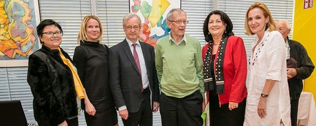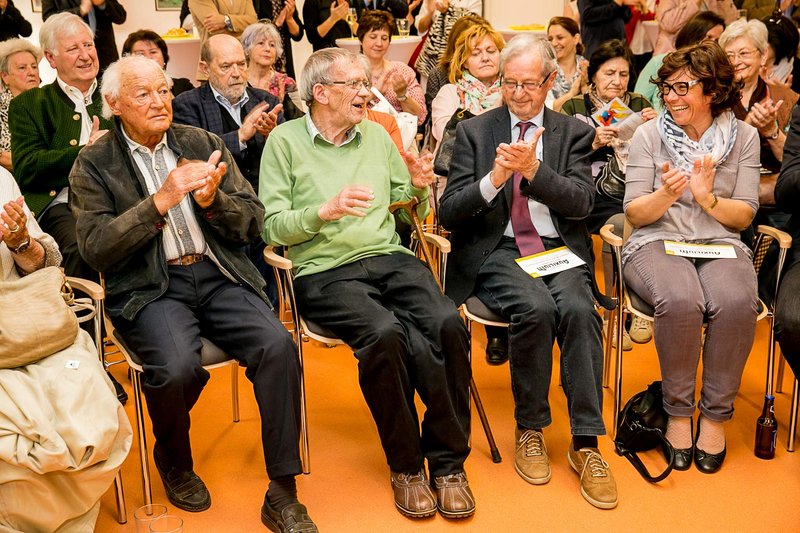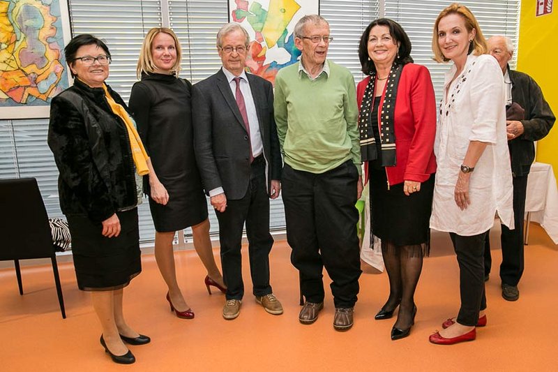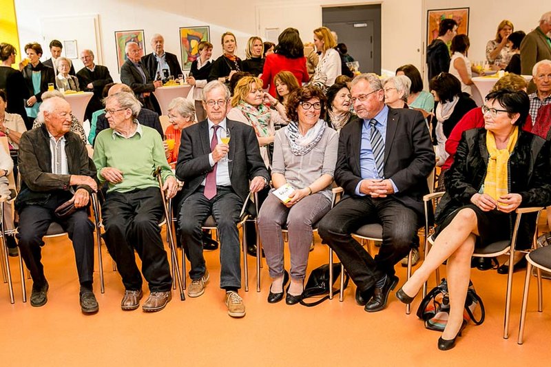 Vizebürgermeister Christian Scheider, die Gemeinderäte Petra Hairitsch, Mag.a Susanne Hager, Mag. Erich Wappis, Ing. Mag. Dr. Gerhard Leitner, Ulrike Herzig; Günther Scheider wie auch Familienmitglieder und die Freundesrunde des Künstlers mit Gattin und viele Freunde des Hilfswerks Kärnten.