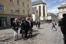 Es ist Mittag, Villach ist das nächte Ziel, genauer gesagt der Interspar in der Ringmauergasse. Auch hier wieder das gleiche Bild wie schon zuvor in Klagenfurt, Leute begrüßen, zuhören, ein paar Worte wechseln, kurze Gespräche, Hände schütteln usw. Nächster Programmpunkt, Besuch der Villacher Fleischerei Hartl mit Überreichung einer Dankeschön-Torte. Weiter geht es in die Widmanngasse, zum Kärntner Heimatwerk in Villach. Hier wird Khol von der Kleinen Zeitung begleitet, Interview inklusive. Im Cafe Rainer und anschließend im GH Bacchus trifft Khol dann auf Sympathisanten, mit denen er teils intensive Gespräche führt. Der letzte Termin in Villach führt zum Taxistand beim Park Hotel, wo Khol frischen Kaffee an Taxifahrer verteilt. Da sämtliche Villacher Termine zu Fuß beschritten wurden, kam es auch am Weg zu eben den einzelnen Terminen immer wieder zu kurzen Begegnungen mit Menschen.