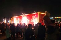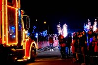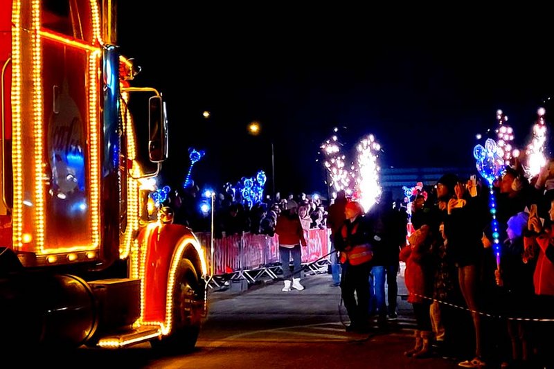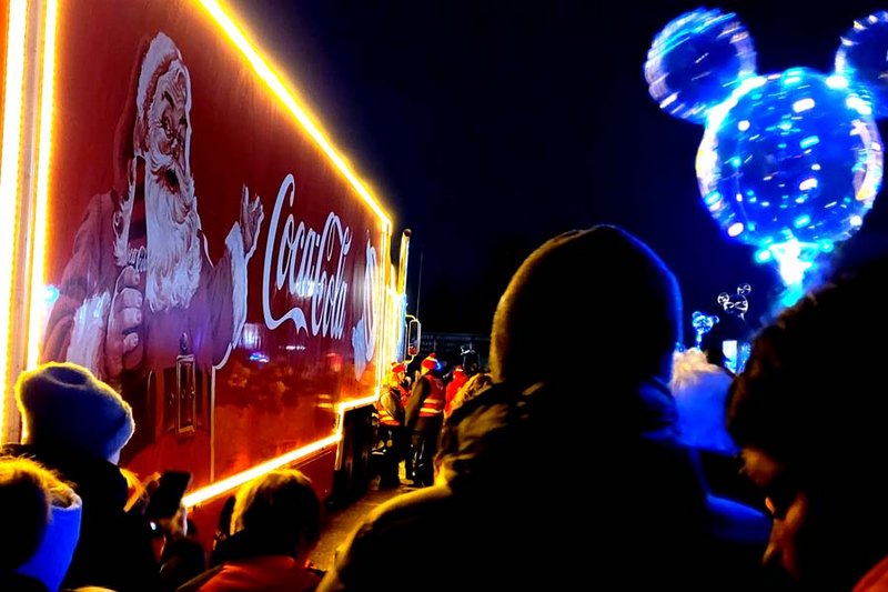 Die Wartezeit auf die Einfahrt des Coca-Cola Weihnachtstrucks wurde mit Musik und gemeinsamen Singen zugebracht.