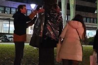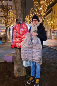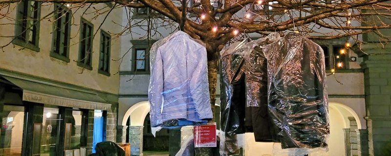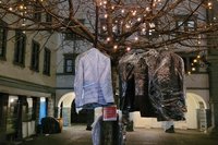Vorwiegend, aber nicht nur, wurde die Winterbekleidung in jenen Innenstadtbereichen an Bäume gehängt, wo sich bekanntermaßen obdachlose Personen aufhalten.