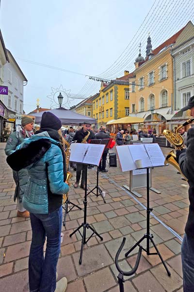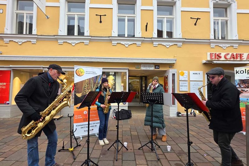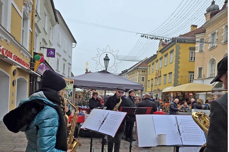 Begleitet vom Saxophonensemble „The Cool Pingers“ wurde dort ein Christbaum aufgestellt, als Erinnerung an den ersten Christbaum Klagenfurts, den der „Katholische Gesellenverein“ bereits am 26. Dezember 1855 in die Stadt gebracht hatte.