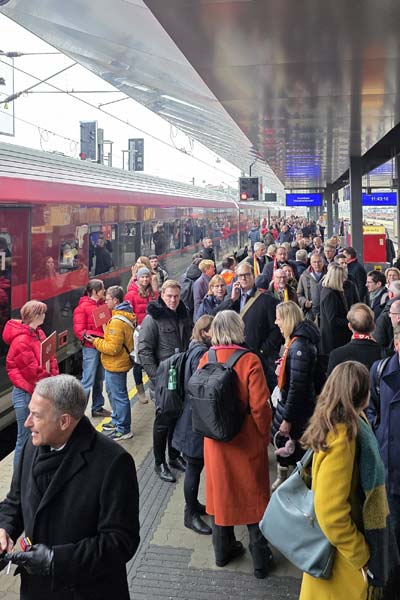 Am 12. Dezember gibt es für Bahnbegeisterte, die dieneue Strecke der Koralmbahn ausprobieren möchten, ab Nachmittag stündliche Sonderfahrten zwischen Klagenfurt und Graz. Der Regelbetrieb der Koralmbahn startet am 14. Dezember. Das abwechslungsreiche Rahmenprogramm zur heutigen Eröffnungsfeier war vielseitig. Neben regionalen, kulinarischen und musikalischen Highlights werden auch alle möglichen Informationen zur Koralmbahn geboten.