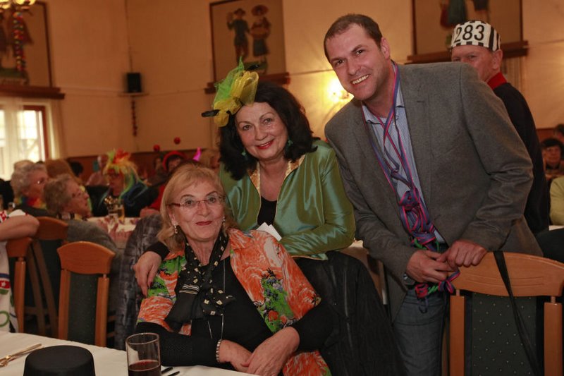 Obfrau Elisabeth Scheucher-Pichler, Horst Krainz und Christa Krainz von der Sozialen Hilfsgemeinschaft Klagenfurt luden zum traditionellen Faschingsnachmittag beim Lamplwirt.