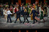 Nach rund 90 Minuten endete die Premiere von „Orfeo ed Euridice“ mit einem festlichen Schlussbild und einem Publikum, das seine Begeisterung mit langanhaltendem Applaus und vielen Bravorufen ausdrückte.