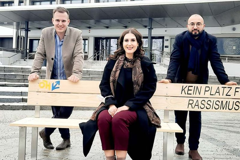 Das ÖH-Vorsitzteam hat gemeinsam mit dem Initiator des Projekts, Sinan Tepe, die Anti-Rassismusbank vor der Klagenfurter Universität aufgestellt, um damit ein starkes Zeichen gegen Rassismus zu setzen.