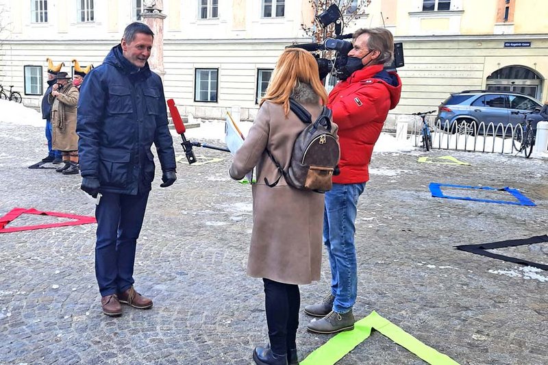 Im Klagenfurter Landhaushof wurde gestern, Dienstag, die Kärntner Faschingszeitung „Täglich Fasching“ im Zeichen von „Abstand mit Anstand“ präsentiert. Eberhart: „Hier wird nicht getrennt zwischen Gesunden, Geimpften und Genesenen. Denn, wenn jeder in Anstand und Abstand lebt, gäbe es keinen Lockdown!“