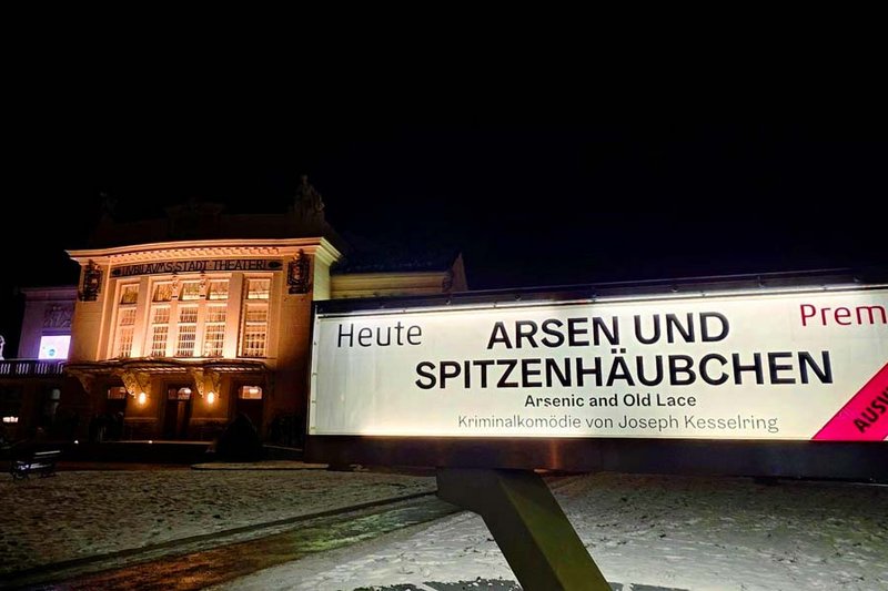 Mit einer gelungenen und gut besuchten Premiere eröffnete das Stadttheater Klagenfurt das neue Jahr. Auf dem Spielplan steht „Arsen und Spitzenhäubchen“ von Joseph Kesselring in der deutschen Fassung von Helge Seidel. Regie führte Peter Wittenberg, der gemeinsam mit seinem komödienerprobten Ensemble für ein kurzweiliges Vergnügen sorgte.