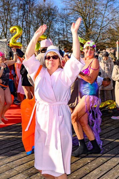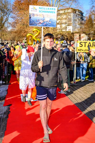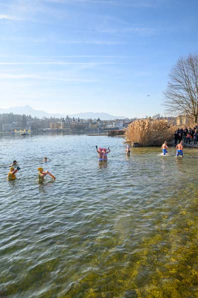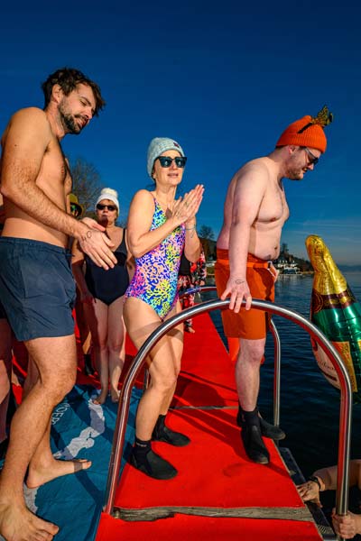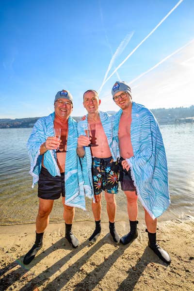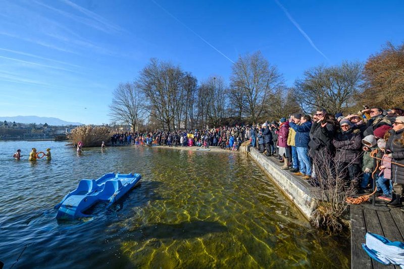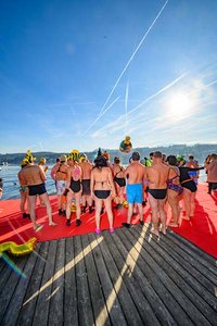 Der Verein „Sport am Wörthersee“ hat die Tradition des Neujahrsschwimmens 2010 ins Leben gerufen. Wer sich nicht in die Fluten wagte, konnte bei einem Temperatur-Schätzspiel mitmachen. Für die Sicherheit der Teilnehmerinnen und Teilnehmerinn hat das 20-köpfige Team der Veldener Wasserrettung gesorgt, das mit drei Booten anwesend war.