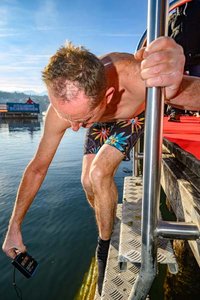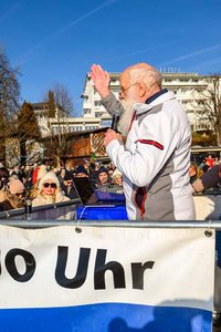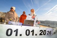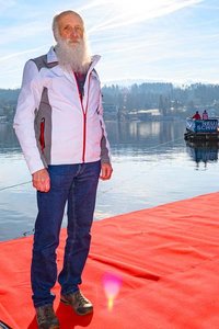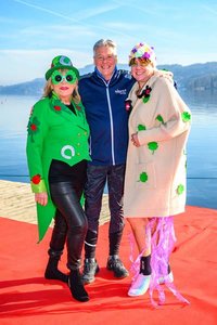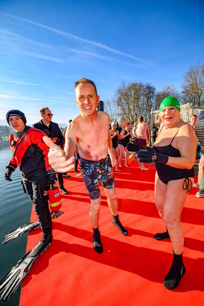 LH Peter Kaiser wünschte allen Anwesenden „ein glückliches und friedliches neues Jahr“. 100 kältefeste Schwimmerinnen und Schwimmer sprangen mit Kaiser pünktlich um 12 Uhr in den See, „was nicht nur die Lebensgeister nach der Silvesternacht weckt, sondern Glück bringen soll und uns einstimmt auf ein neues Sport- und Bewegungsjahr“, so Kaiser. „Es geht nicht um Geschwindigkeit, sondern darum, Gemeinsamkeit zu leben, unser gesellschaftliches Leben zu pflegen, Freude an der Bewegung zu haben und auch, mit Mut und Zuversicht ins neue Jahr zu schwimmen“, so Kaiser weiter. Bevor es mit einem Sprung in den See ging, spendete Pfarrer Martin Satlow allen den Neujahrssegen.