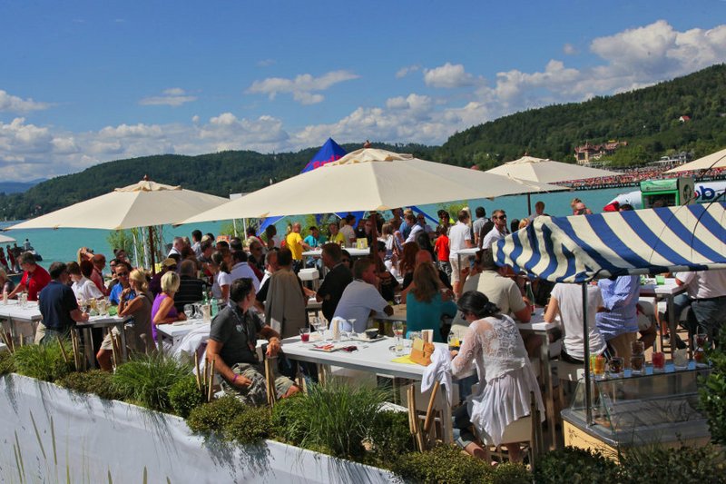 Begeistert zeigte sich Bürgermeister Christian Scheider über die tolle Stimmung und Kulisse beim Beach Volleyball am Klagenfurter Wörthersee.