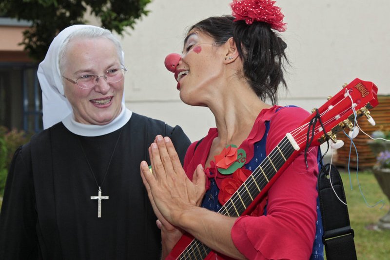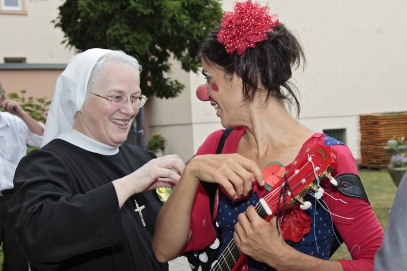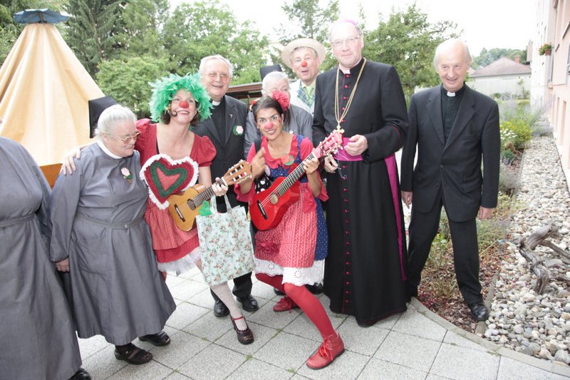 Das bestehende Gebäude des Franziskusheimes wurde den Anforderungen eines modernen Pflegeheimes entsprechend angepasst, ausgebaut und nun eröffnet. Es bietet ca. 85 Personen in freundlichen Ein- und Zweibettzimmern ein neues Zuhause. Die Clown Doctors führten die Besucher durch die neuen Räumlichkeiten.