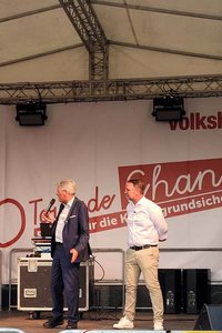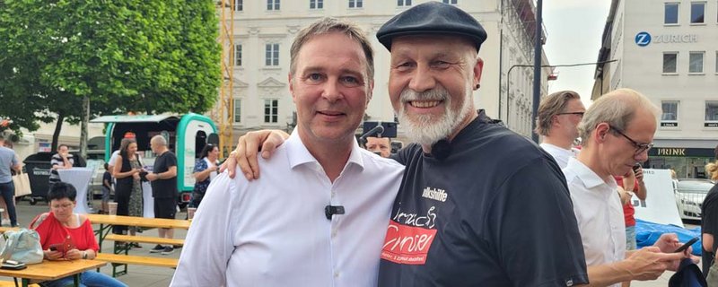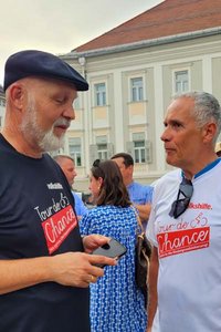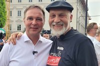 Bei der Abschlusskundgebung am Neuen Platz war auch Andreas Babler anwesend. Schnell wurde Babler zu einem beliebten Fotomotiv und musste zahlreiche Selfies mit Passanten schießen.