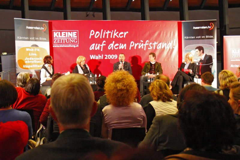 Christian Scheider (BZÖ) und Maria-Luise Mathiaschitz (SPÖ) stellten sich im Kärntner Landesarchiv, ein paar Tage vor der Bürgermeister-Stichwahl, einer Podiumsdiskussion unter der Leitung von Christian Wetternig, Melanie Fanzott und Bettina Auer von der Kleinen Zeitung.