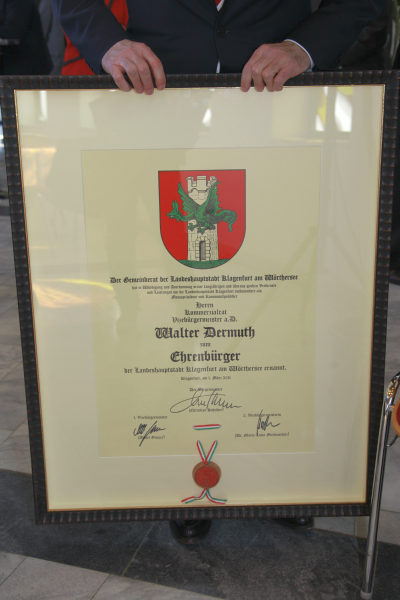 Walter Dermuth wurde von der Stadt Klagenfurt die Ehrenbürgerschaft-, sowie von der Messe der Ehrenring der Kärntner Messen verliehen. Auch wurde die Messhalle 2 nun in "Walter Dermuth-Halle" umbenannt.
