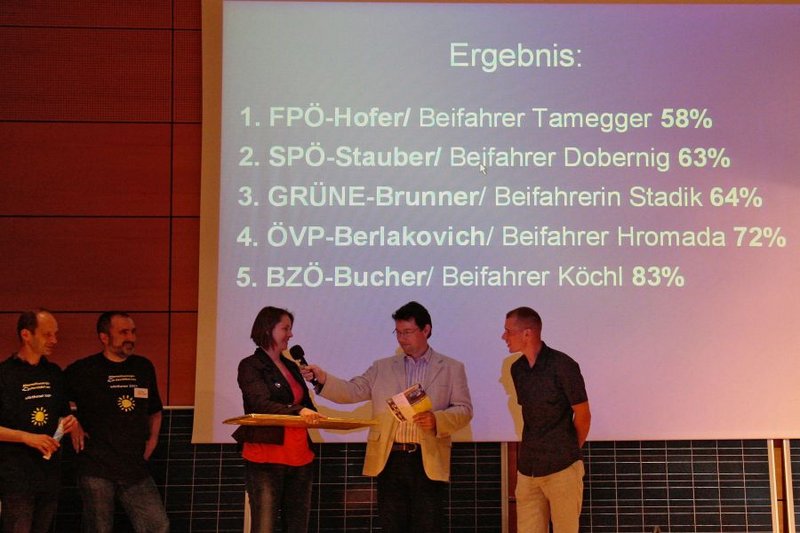 Verliehen wurde der „CARINTHIAN ENERGY AWARD powered by KELAG“. Beim Rennen un den geringsten Stromverbrauch nahmen Umweltminister Niki Berlakovich (ÖVP), NRAbg. Christiane Brunner (Die Grünen), NRAbg. Clubobmann Josef Bucher (BZÖ), NRAbg. Norbert Hofer (FPÖ) und NRAbg. Bgm. Peter Stauber (SPÖ) teil.