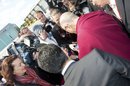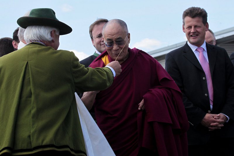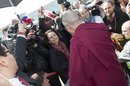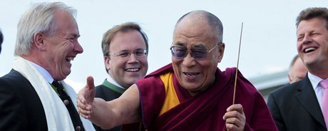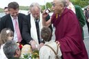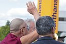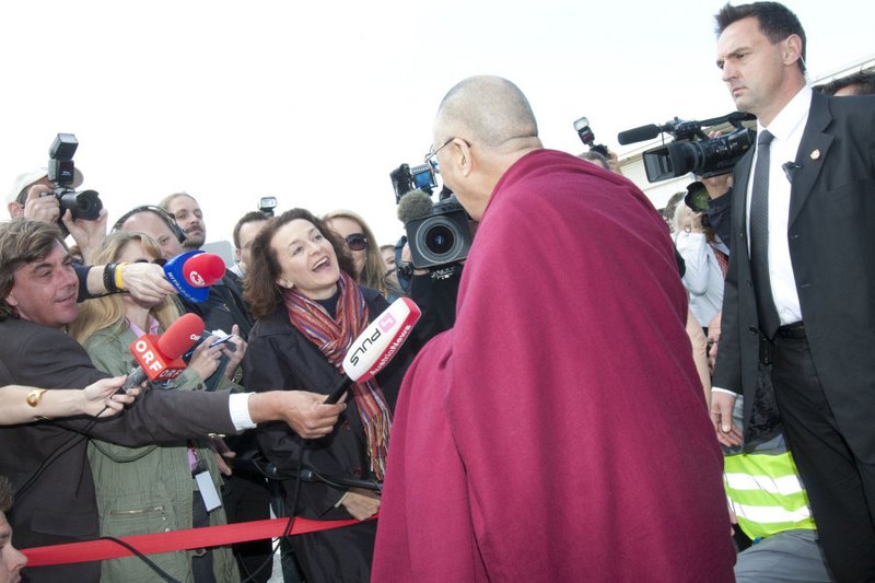 "Ich bin sehr glücklich, wieder hier zu sein", rief der Dalai Lama. "Österreich scheint ein gutes Land zu sein, wo die Kluft zwischen Arm und Reich noch nicht so groß zu sein scheint wie anderswo."