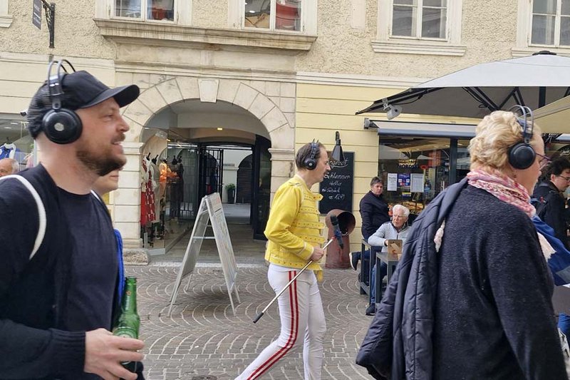 Ein Walking Concert ist kein klassisches Konzert mit fester Bühne und Zuschauerreihen. Stattdessen bewegt sich der Künstler gemeinsam mit dem Publikum durch den öffentlichen Raum, eine Art musikalischer Spaziergang durch die Stadt. Das Besondere: Die Musik wird nicht über Lautsprecher übertragen, sondern über drahtlose Kopfhörer, die an die Teilnehmerinnen und Teilnehmer ausgegeben werden. So entsteht ein beinahe lautloses Konzert, das nur für jene hörbar ist, die mitgehen, ein kollektives Erlebnis, bei dem Außenstehende oft nur die tanzende, lächelnde Gruppe und den ins Mikrofon singenden und tanzenden Künstler wahrnehmen. Diese Form des Konzerts ist nicht nur originell, sondern schafft auch eine intime Verbindung zwischen Künstler und Publikum, mitten im urbanen Raum.