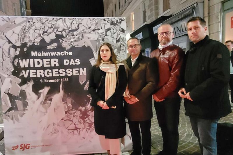 Um dem Vergessen und der Verdrängung an dieses verbrecherische Ereignis entgegenzuwirken, hielt die SJG Kärnten wie jedes Jahr am 08. November einen Stadtspaziergang und eine Mahnwache in Klagenfurt ab, um an die Opfer des Novemberpogroms und der Nazi-Diktatur zu erinnern.