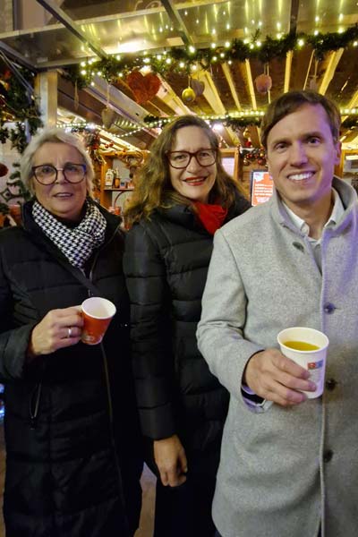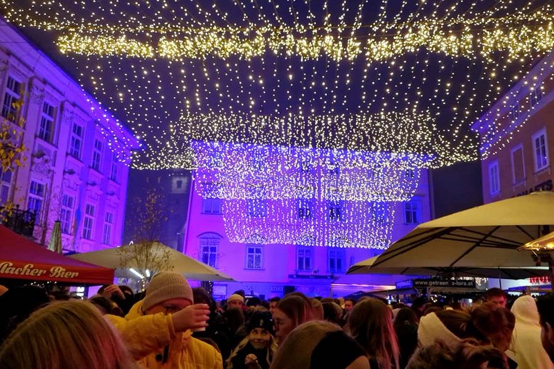 Die Wirte von teatro in the city, der Golden Goose Bar, Bar Italia und dem Stadtcafé haben sich zusammengeschlossen, um den Alten Platz beim Glühwein-Opening mit Licht, Musik und Herzlichkeit zu füllen, DJ Dietmar Staller und DJ MAPH x MIIdub MC sorgten für coole Stimmung.